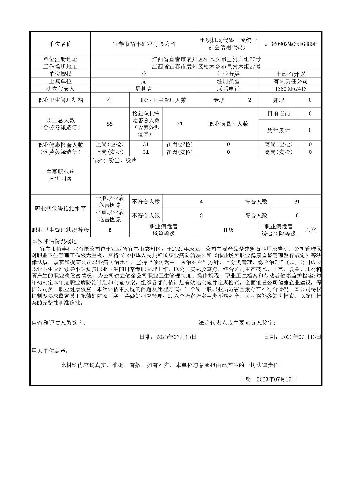 宜春市裕豐礦業(yè)有限公司用人單位職業(yè)病危害綜合風(fēng)險(xiǎn)評(píng)估報(bào)告